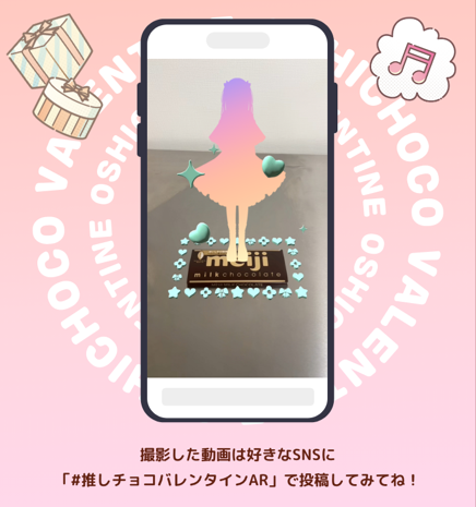 (3)再生ボタンを押すとARスタート 撮影した動画は好きなSNSに、 #推しチョコバレンタインAR をつけてシェア