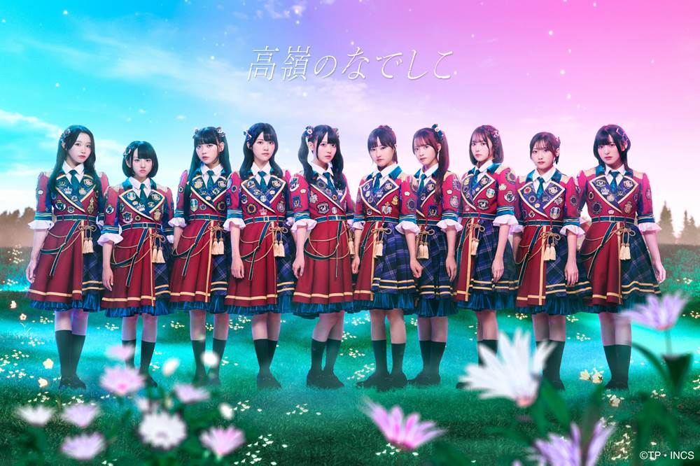 城月菜央、涼海すう、橋本桃呼、菜月紗蘭、春野莉々、東山恵里沙、日向端ひな、星谷美来、松本ももな、籾山ひめりという 10 名で 2022 年に結成された高嶺のなでしこ。JDOL AUDITION を勝ち抜いた7名と元ラストアイドルのメンバー3名の 10 人で編成される。同年 10 月に『アンチファン』で CD デビューすると、その後は配信で楽曲を発表。2024 年2月には『美しく生きろ/恋を知った世界』でメジャーデビューを果たし、順調なセールスを記録するなど一躍人気アイドルグループとなった。