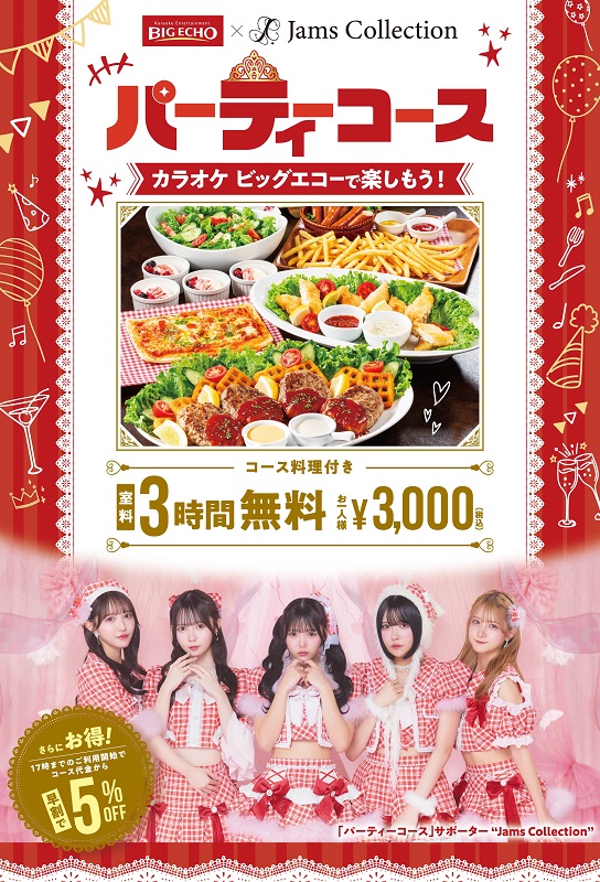 アイドルグループ Jams Collectionが、カラオケビッグエコー パーティーコース サポーターに就任した。最新楽曲『シンデレラマインド』がそのサポーターソングに決定。1日より全国のカラオケビッグエコー店頭にて『シンデレラマインド』をテーマソングにJams Collectionメンバーが登場するパーティーコースCMが放送開始される。