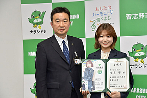 ハロー!プロジェクトのアイドルグループ・アンジュルムのメンバー、川名凜(かわなりん)さんが24日、習志野市PR大使に任命された。