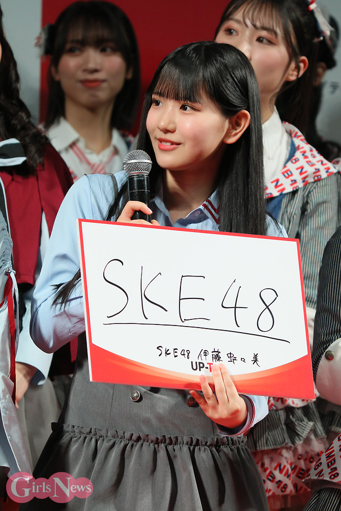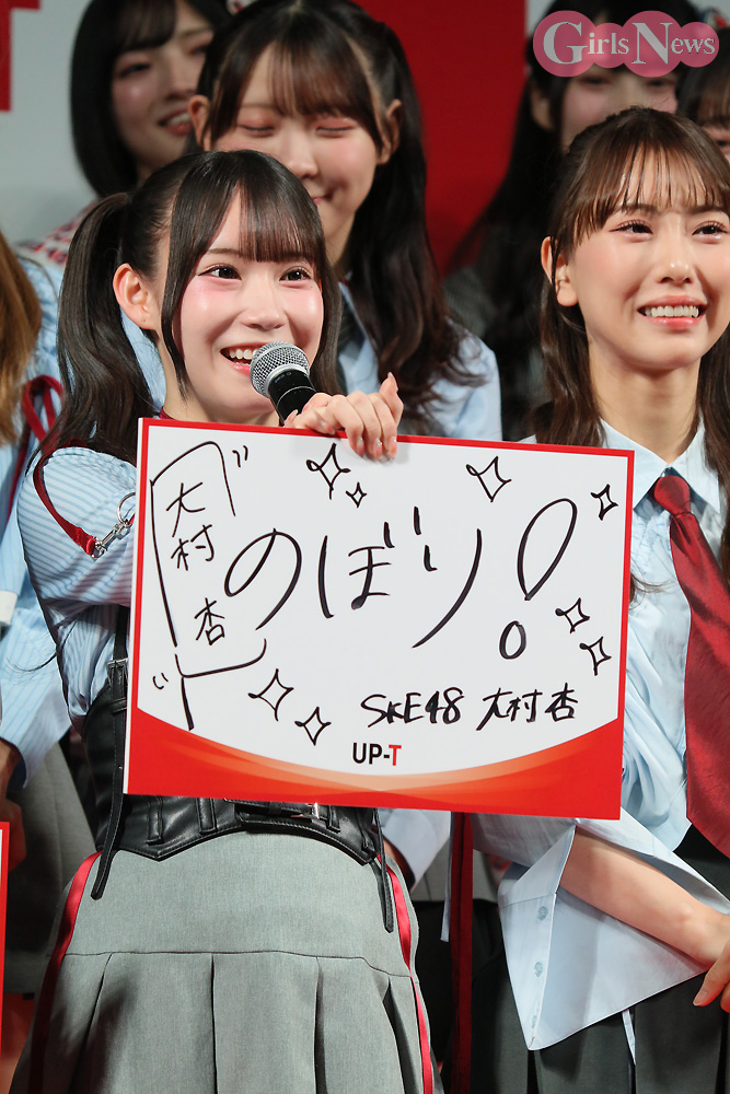 SKE48が30日、都内で開催された「UP-T新CM発表会見」に参加し、新CMを紹介した。登壇したのは伊藤虹々美、熊崎晴香、坂本真凛、野村実代、伊藤実希、井上瑠夏、菅原茉椰、浅井裕華、大村杏、河村優愛、森本くるみ。ほかの48グループやラフ×ラフ、ひろゆき、すもっぴと共に、総勢45名がステージを彩った。