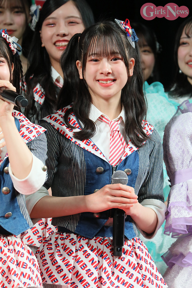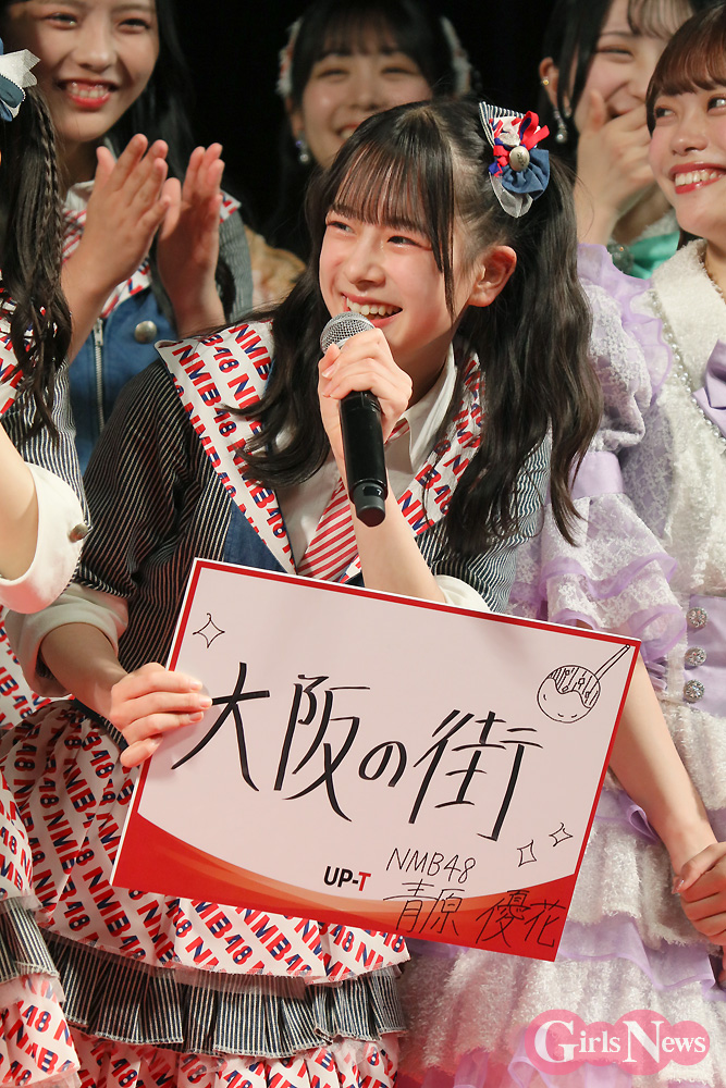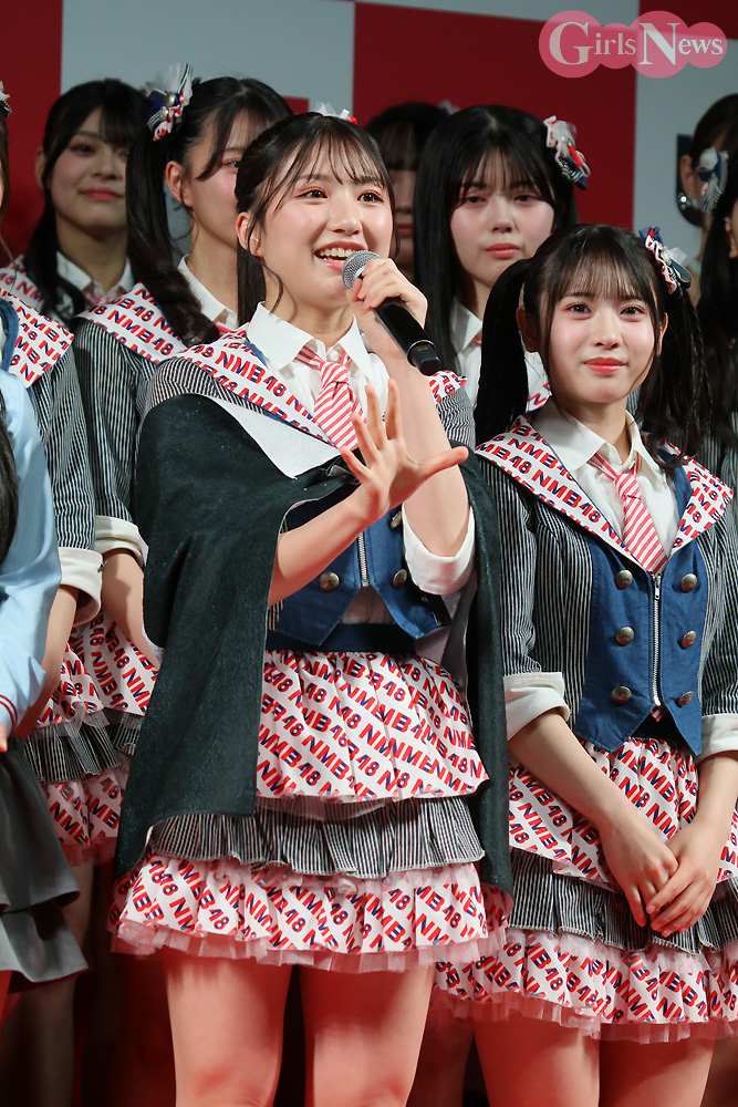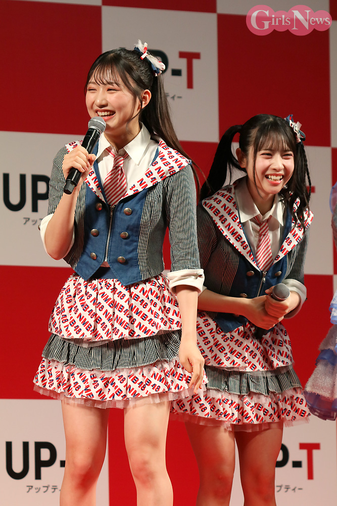 NMB48のメンバーが4月30日、都内で開催された「UP-T新CM発表会見」に登壇。青原優花、池帆乃香、池田典愛、板垣心和、坂下真心、坂田心咲、桜田彩叶、塩月希依音、高橋ことね、龍本弥生、芳賀礼、三鴨くるみの12名が登壇し、ほかのAKB48グループやラフ×ラフ、ひろゆき、すもっぴと共に、総勢45名が集結した。