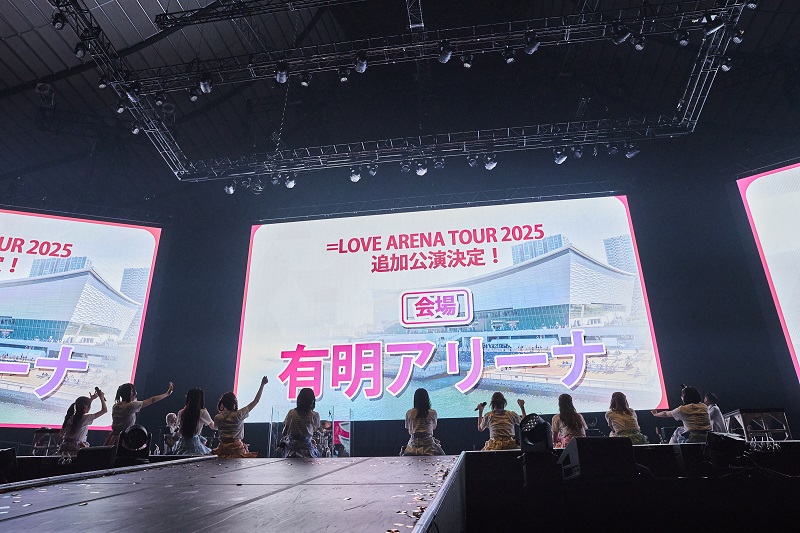 ここまで充実のライブを展開してきた=LOVEだが、アンコールからは生バンドをバックにしたパフォーマンスを披露し、観客の満足度をより一層高めていく。『恋人以上、好き未満』『ナツマトペ』『夏祭り恋慕う』など5曲が躍動感と迫力をたたえて届けられた。会場の盛り上がりが加速していく中、その後のMCでは=LOVE ARENA TOUR2025「~Timeless Tales~」が完売した公演も出る大盛況のツアーとなったことを受け、7月12日、13日に東京都・有明アリーナで追加公演が行われることが明らかに。そしてラストナンバーとして『探せ ダイヤモンドリリー』が披露されると、場内のボルテージが最高潮に達した。