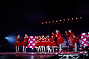 次のブロックでは黒を基調とした大人びた衣装でパフォーマンスが進行。=LOVEは上昇するセットの上でマイクスタンドを片手に『呪って呪って』を歌唱し、『手遅れcaution』では情熱的な歌とダンスを届けた。また彼女たちは『ラブクリエイト』が始まると、ムービングステージに乗ってスタンド席の近くで歌唱。『Oh!Darling』でタオルを振り回したり、猫耳やサングラスなどのアイテムを身に着けながら『Junkies』を歌ったりとにぎやかなライブを展開し、会場全体の熱気を引き上げた。