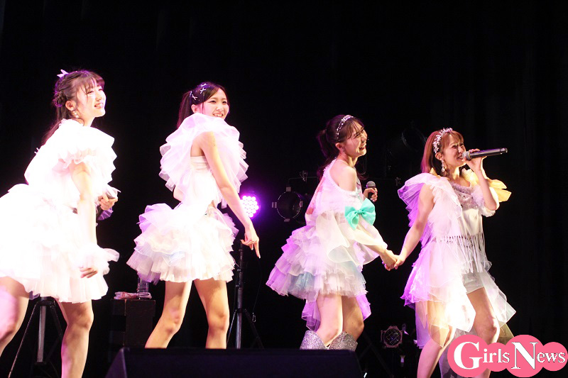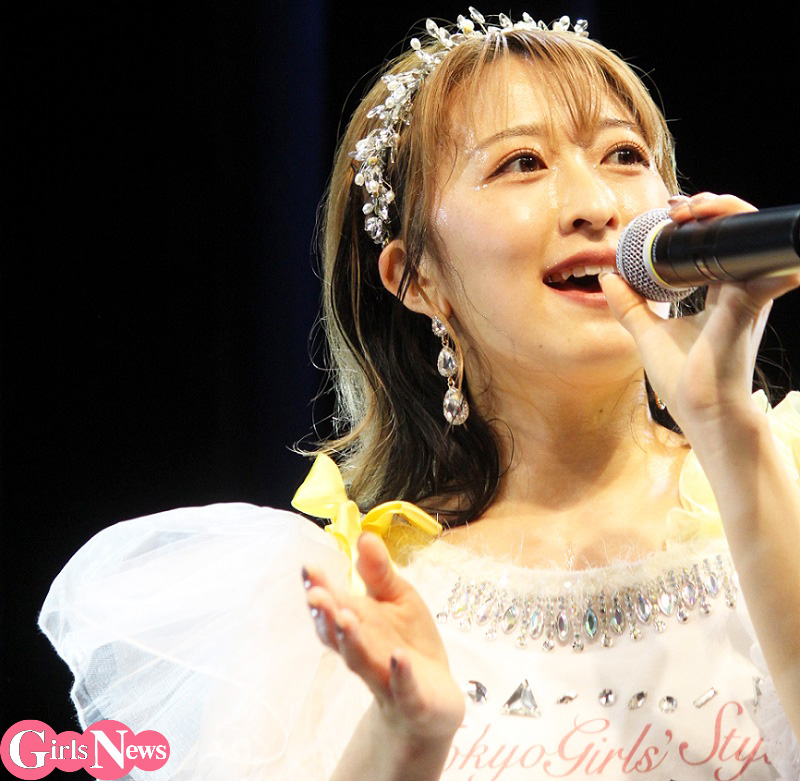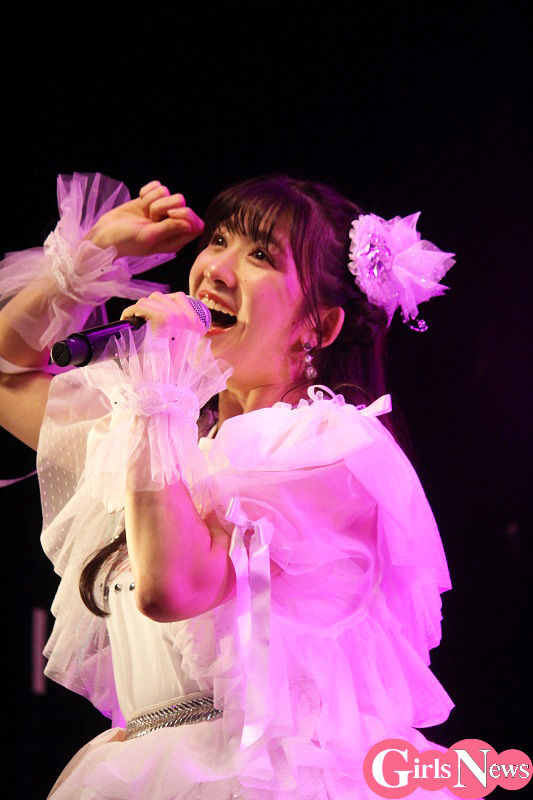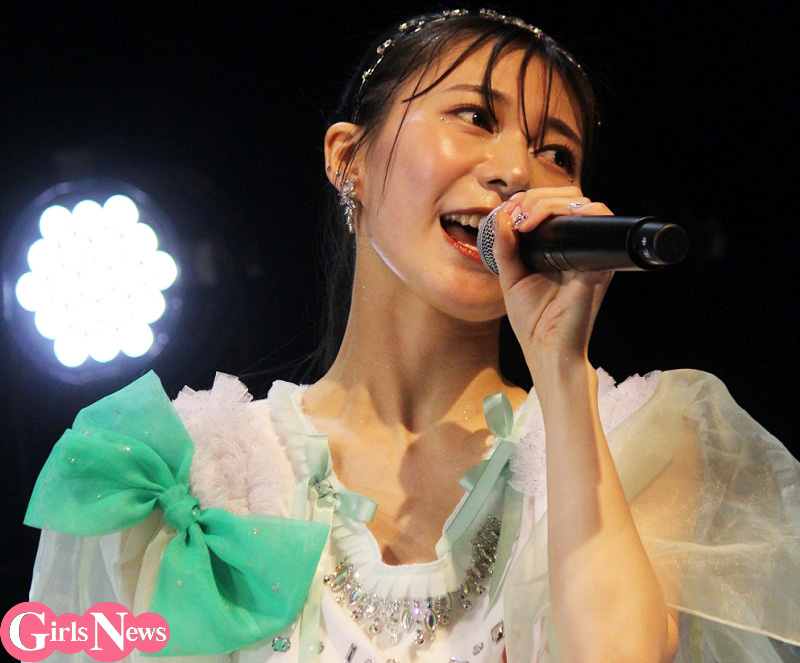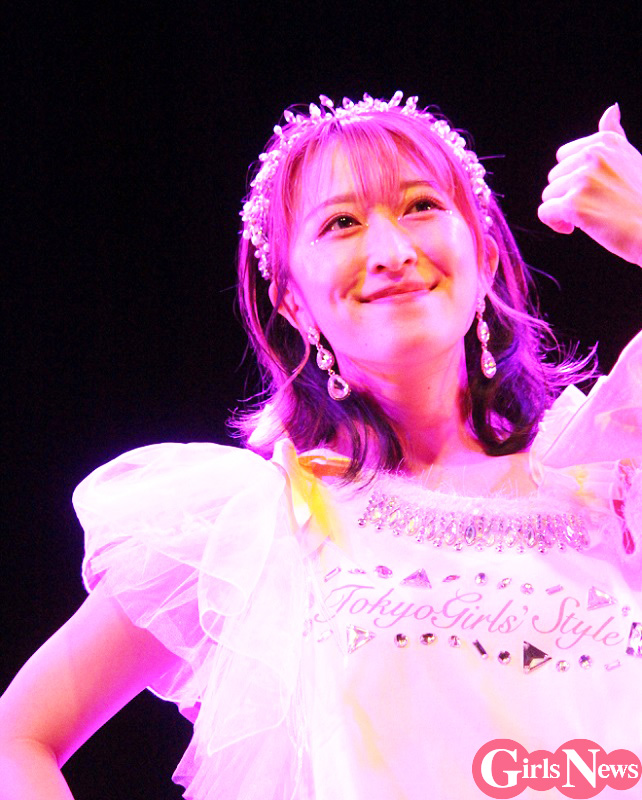 まず山邊未夢さんが『グッバイ・スターライト』を披露。近年の東京女子流の代表曲を手掛ける、きなみうみ氏による、“ギャル×アイドル×儚い”というイメージで作られたという楽曲。ハイトーンで爽やかなボーカル、4人のソロ新曲の中では最もアップテンポ&ダンサブルで、ステージでは山邊さん自身もサイリウムを振りながら、客席と一体感のある盛り上がりを見せた。
