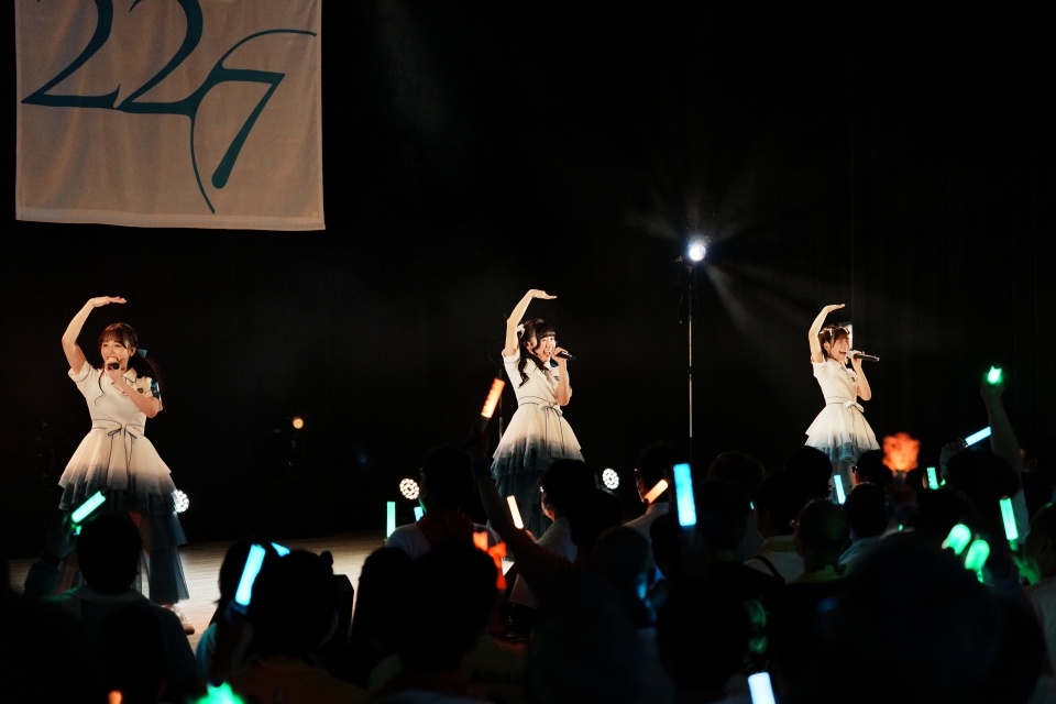 後半は、最新表題曲『あなたでなくちゃ』を皮切りに、『ロックは死なない』『曇り空の向こうは晴れている』、そして本編ラスト『YESとNOの間に』まで、一気に駆け抜ける構成。恋愛・熱量・メッセージ性──三者三様の楽曲が並ぶことで、「今の22/7」の持つパワーが力強く伝わってきた。
