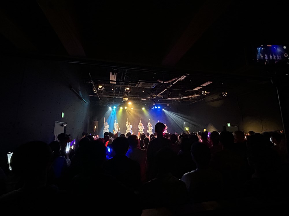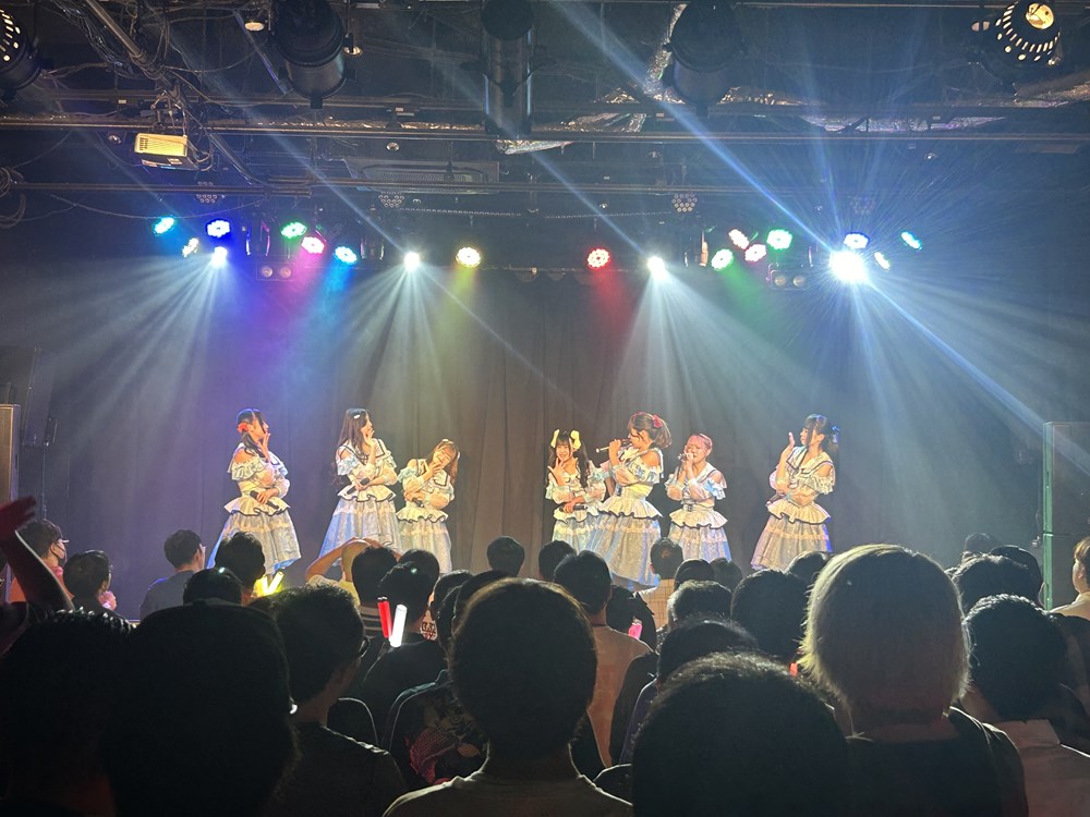 ライブ後半では、新曲『果てなきラビリンス』を初披露。サビから始まる構成で、迷いと希望を表現したパフォーマンスが特徴だった。最後は『渚のシンデレラ 〜Summer Breeze〜』で締めくくり、7人が一列に並んで歌い上げた。
