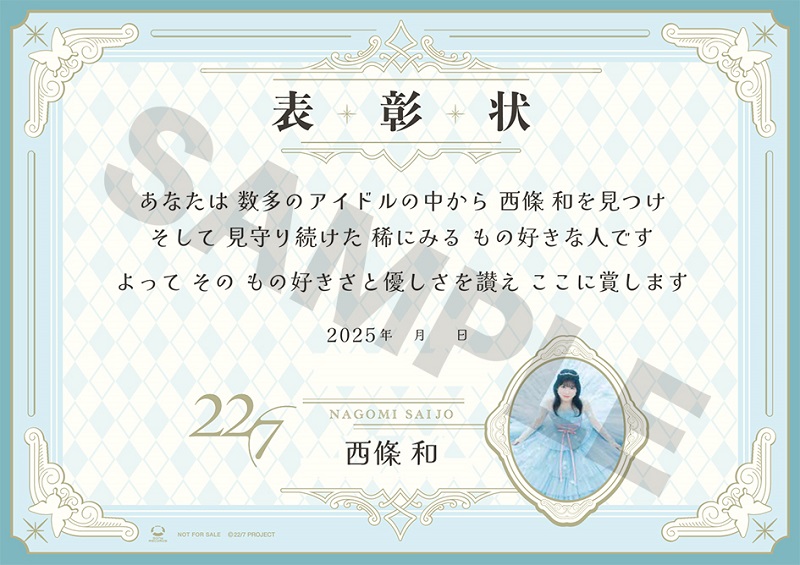 加えて、6月16日(日)タワーレコードNU茶屋町店(大阪)よりスタートする、西條和の単独イベント「ねむねむ会ツアー」でも、本作に関連する特典が続々登場。第1部「アナザージャケットプレゼントの会」にて配布される限定アナザージャケットの絵柄が解禁されたほか、第2部「表彰状授与の会」では、西條さん本人より直接手渡しされるオリジナル表彰状のサンプル画像も公開された。