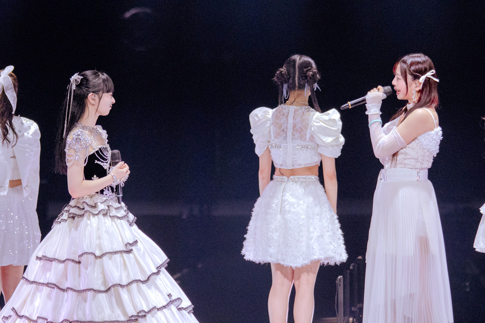 MCでは「横浜アリーナにお集まりのみなさん、ようこそー!」と挨拶すると、すでに大盛り上がりの会場から歓声があがる。伊勢鈴蘭にラストステージへの思いを聞かれた上國料はまず「信じられない!」と率直な思いを話し、「円陣で泣くかなと思ったけど、楽しみが勝ってた!」と開演前を振り返る。またこの日はツアーファイナルということもあり、「このツアーで一人ひとりが成長して、今日のために一生懸命頑張ってきた」といい、ファンに向けて「みなさんにも盛り上げてもらいたいなと思います!」と笑顔。