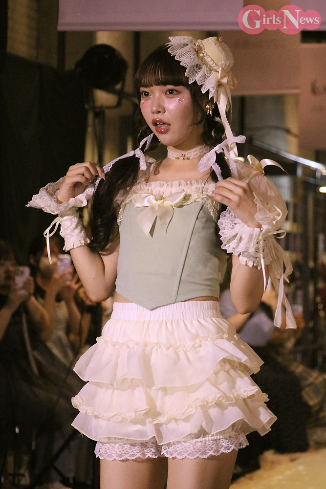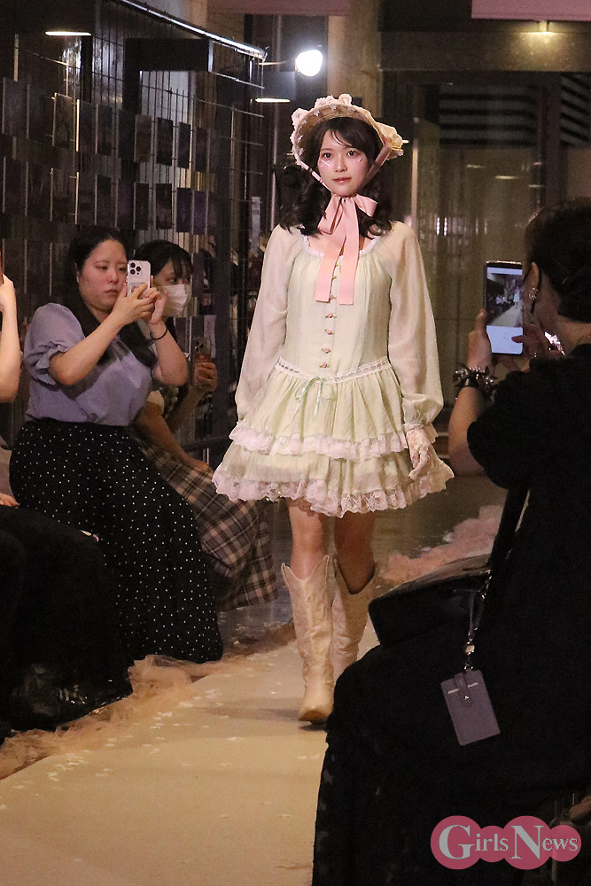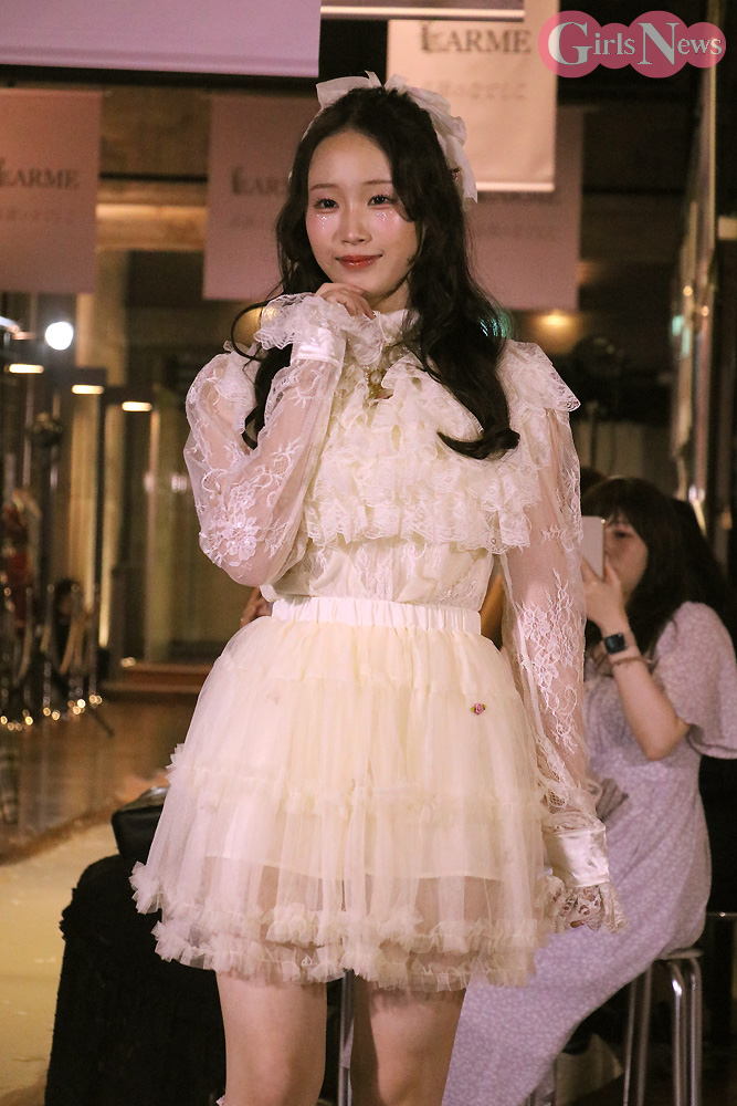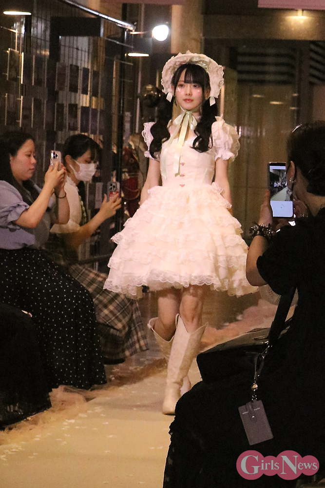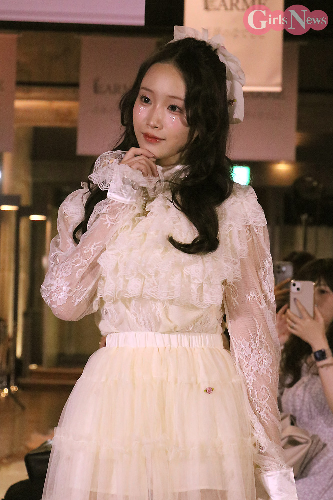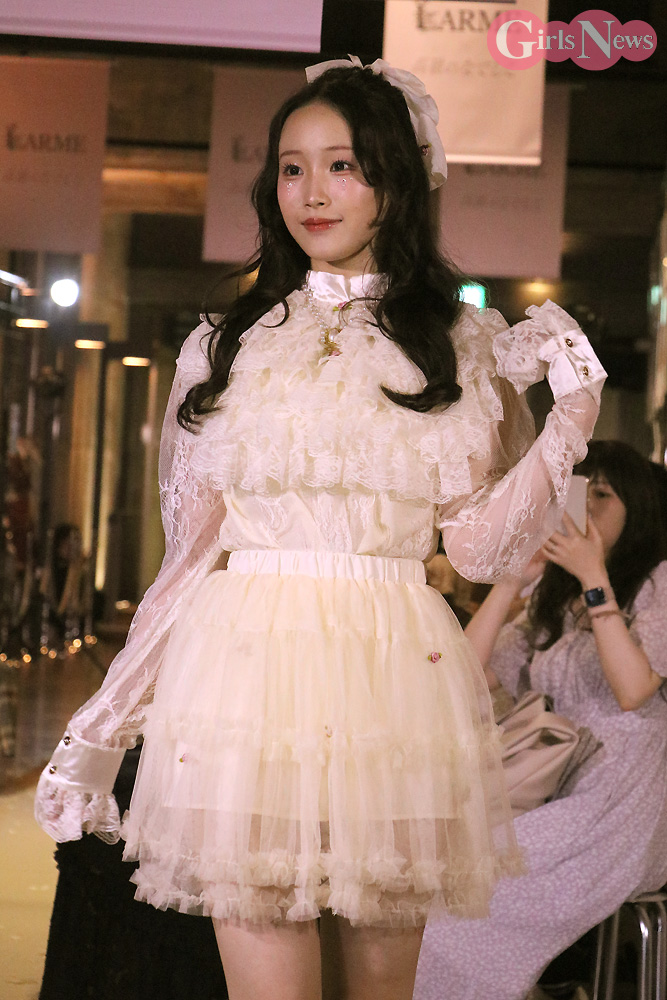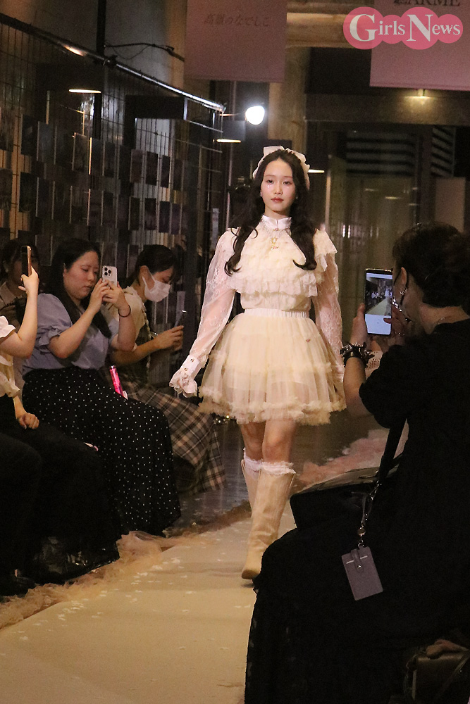 このファッションショーは、6月25日から29日まで開催のPOP UP STOREの一環として一夜限りで行われたもの。抽選で招待されたファンが見守る中、メンバーは幻想的な光と音で演出されたランウェイに登場。「妖精のよう」と評された、ふわふわとした世界観の衣装でウォーキングを披露し、会場を魅了した。