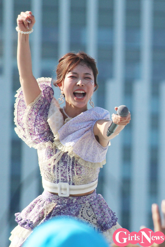 この日は企画コーナー「モーニング娘。 大好きステージ」にメンバーが出演したのに引き続いて、午後からは炎天下のSKY STAGEでワンマンライブを開催。さわやかなパステル調のメンバーカラー衣装で登場したメンバーたち。ライブは『Kiss Me Baby〜恋焦がれ〜』からスタート、続く『UNDEAD』へと、ふんわり可愛いルックスと衣装の印象とはひと違う、ハードな曲調と力強いボーカルで聴かせた。