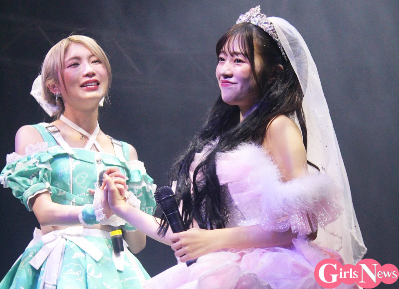 後輩メンバーたちは今日のライブでは“MCで悠未さんに一回は話しかけよう”と決めていたようで、昨年末に姉妹グループの結音YUIONからLinQへ加入した橘杏來さんは、「今日嬉しかったのは悠未さんと髪型が一緒(笑)」とおどけた調子で語ると、髙木さんは「杏來と刻んだ時間は半年ちょっとだったけど、急に所属グループが変わって、歴史の長いLinQに入る、そして先輩っていう人ができるというのは杏來の中で大変だったと思います」「杏來は寂しい思いもしたと思う。みんなに頼っていいんだよ」と優しく語りかけると、橘さんの目からは大粒の涙が溢れ出す。「杏來が結音YUIONで作った仲間と同じように、みんなにもっとさらけ出していいんだよ。だから、頑張ってね。本当は杏來は内に秘めた想いがいっぱいあるのを知ってるから……」。その言葉に号泣する橘さんだった。最後に髙木さんは「みんなで最高のLinQを作ってほしいです」とメッセージを残して、ライブの本編は終了となった。