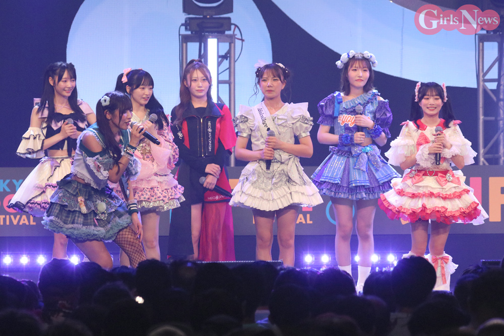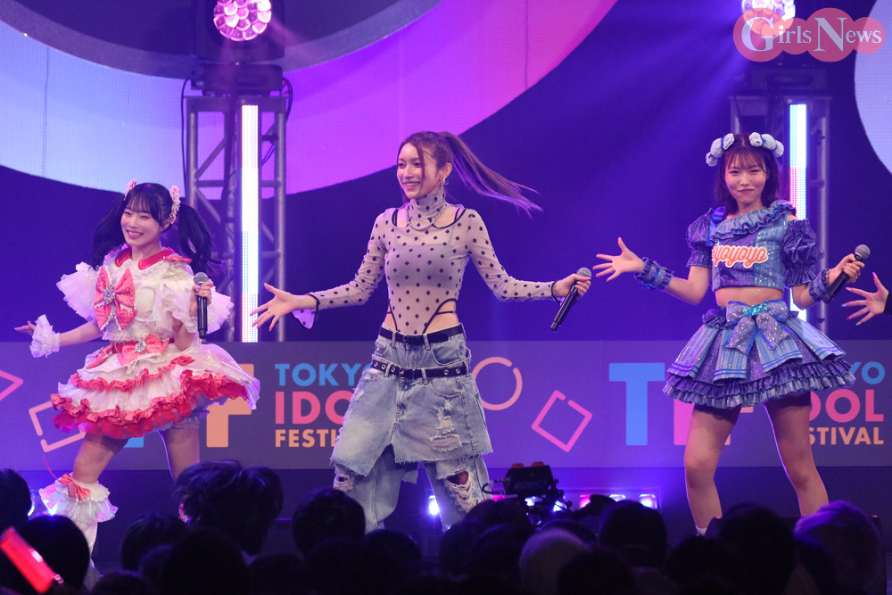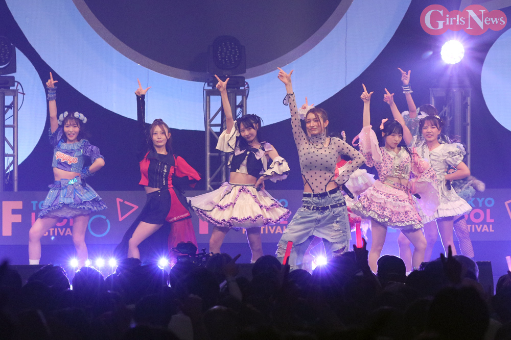 ステージは、後藤さんとアイドル全員による『そうだ!We’re ALIVE』で幕を開けた。後藤さんが同曲をパフォーマンスするのは約20年ぶりだといい、「みんなでわちゃわちゃやるのがすごい楽しかった」と笑顔を見せた。初のTIF出演について「すごい熱気がヤバいですね」と会場の盛り上がりに驚きつつ、「推しのタイムスケジュールに合わせて、ファンのみなさんが入れ替わるのが新鮮ですね」と感想を語った。