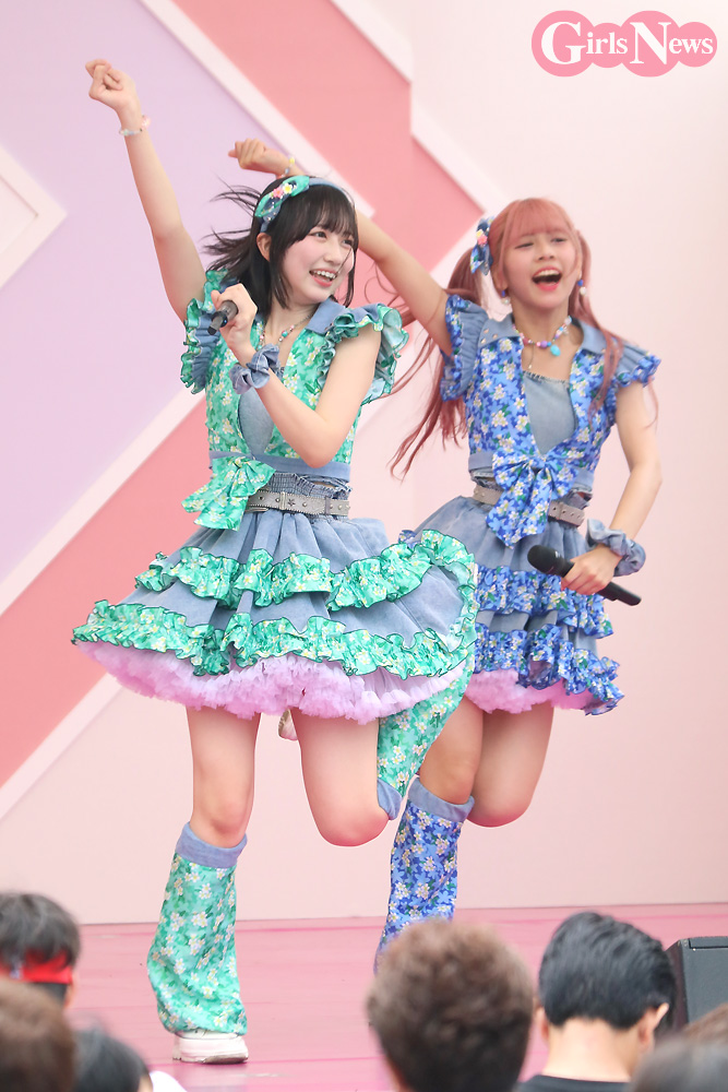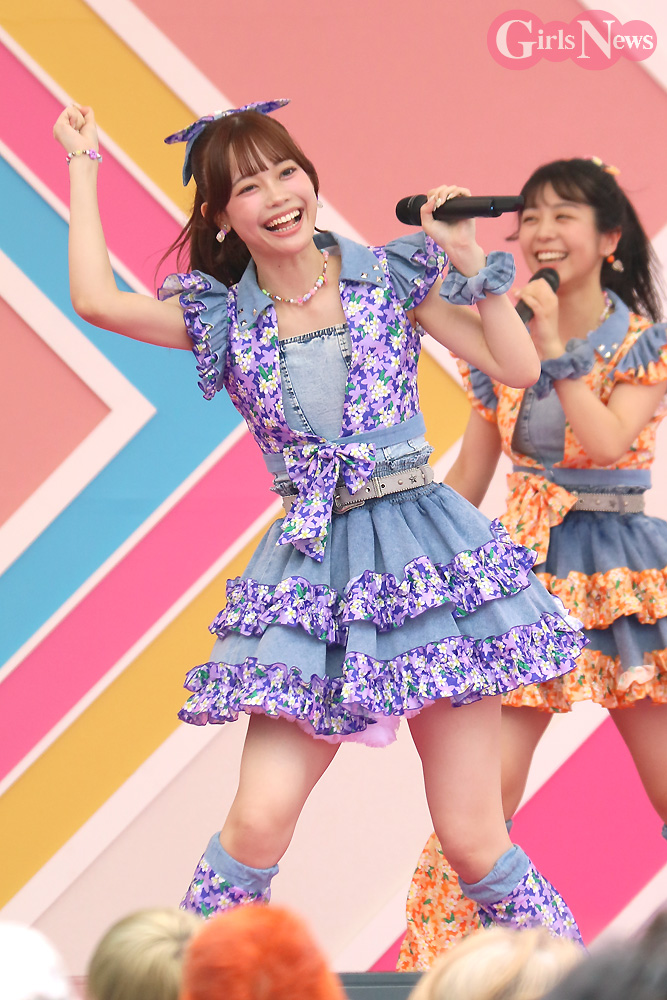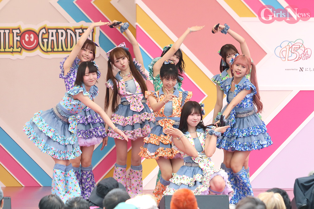 大喜利で会場を温めた後は、ライブ後半戦に突入。『laughing!』『ワタシイロ光る』『100億点』『君ときゅんと』『クライアント』と立て続けに楽曲を披露し、息の合ったダンスと歌声でファンを魅了。持ち前の明るさとパワフルなパフォーマンスで、SMILE GARDENを笑顔で埋め尽くした。