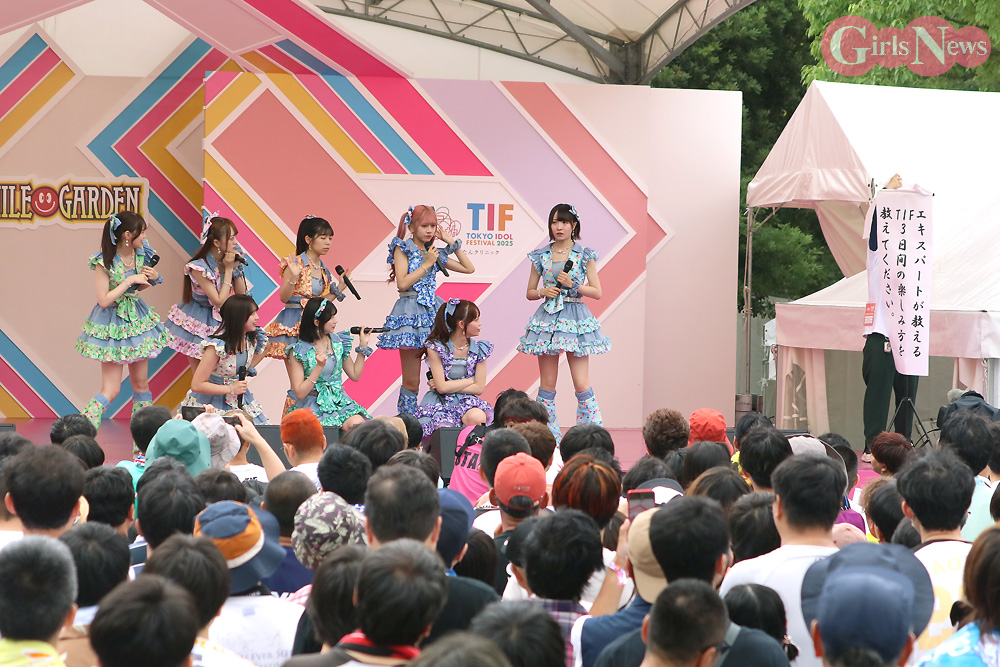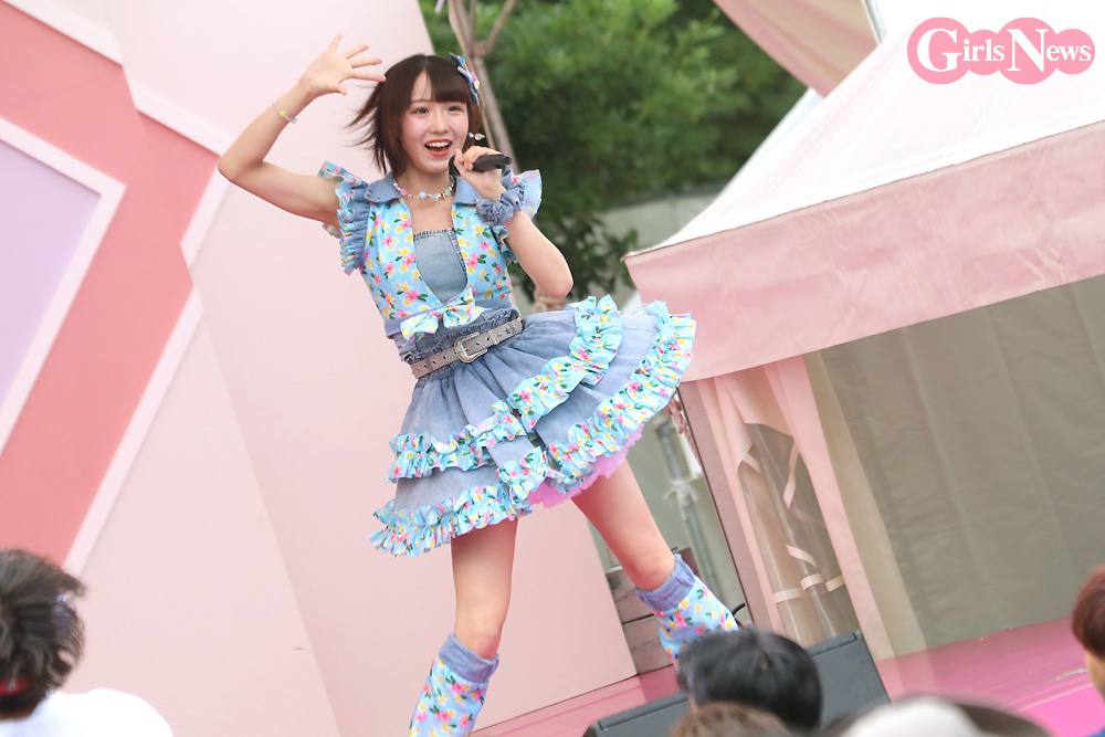 吉村萌南は「SMILE GARDENにいるその辺のスタッフさんに『スマイルください』って言ったら、全然嫌な顔しないでスマイルしてくれます!」と会場にちなんだ回答で笑いを誘った。夏目涼風は「ステージの上がめちゃくちゃ熱いから、この上で1日目卵焼き、2日目チキンライス、3日目でオムライスが完成します!」とユーモアたっぷりに回答。齋藤有紗が「ペンライトの筒に牛乳入れて3日間振ればバターが出来上がります!」と突拍子もないアイデアを披露すれば、日比野芽奈は「みんなの腕に付けてるリストバンドをぐるぐるってやったら3日後に箸置きできちゃいます。便利!」と続け、さらに「3日間、背中に日焼けで推しの名前彫ってます!」とアイドルフェスらしい(?)回答で締めくくった。