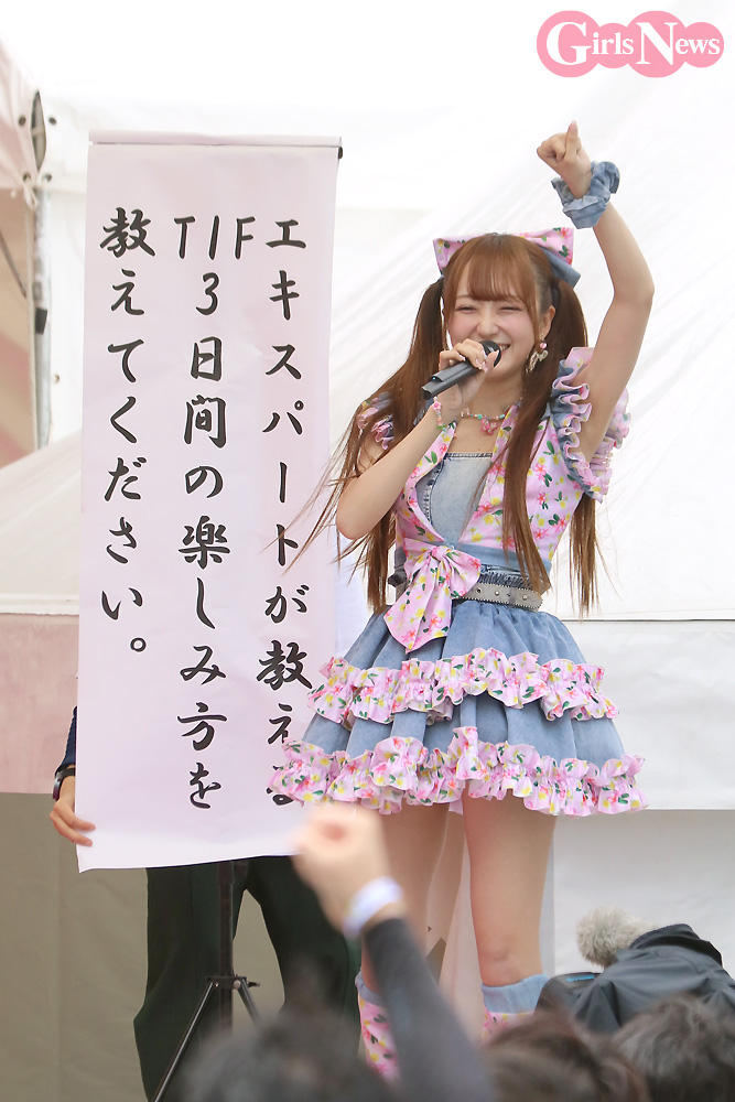 ステージに現れたラフ×ラフは、1曲目『考える時間をください』でライブをスタート。アップテンポなサウンドとキュートなパフォーマンスで、集まったファンの心を一気に掴んだ。曲の最後でグループの代名詞ともいえる大喜利コーナーへ。「エキスパートが教えるTIF3日間の楽しみ方を教えてください」というお題に対し、メンバーが次々と回答を披露した。
