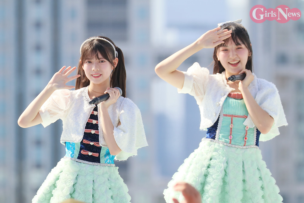 続けて「私たちロージークロニクルは今年の3月にデビューした、ハロー!プロジェクトのいちばん新しいグループです。今日はこのステージを通してたくさんの方に知っていただけるように頑張ります!」と意気込みつつ、「外のステージはとっても暑いので皆さん、水分補給をして、体調第一に頑張っていきましょう!」とファンを気遣った。