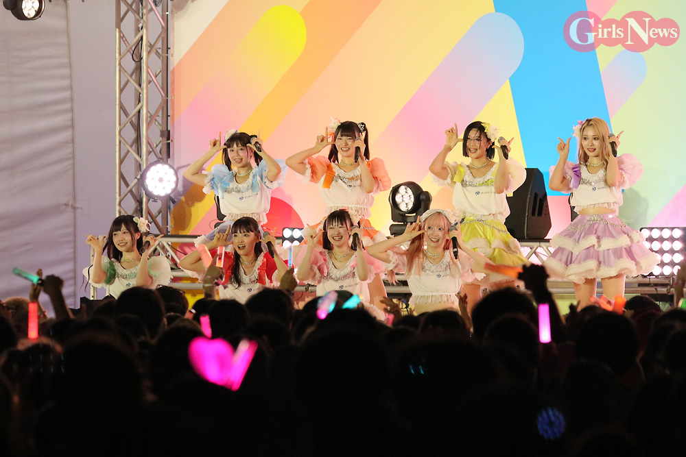ライブ後半は『Trophy Girl』『わざとあざとエキスパート』を披露。「今年のTIFのHOTステージ、一番ホットにするのは、私たちだ! 喰らえ!全開ビーム!」と叫び、キラーチューン『天下一品〜みちのく革命〜』を投下。