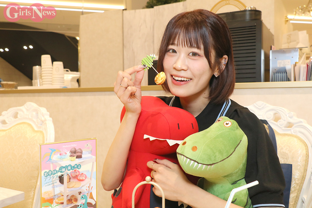 さらに、「私がアイドルとして着ている衣装の袖が、ディロフォサウルスのエリマキがファッ!てなった形に似ているんです。だから、ディロフォサウルスは友達だと思っています」と、ユニークな視点で恐竜との絆を語った。