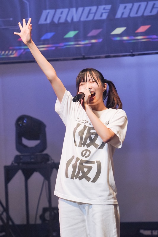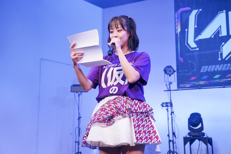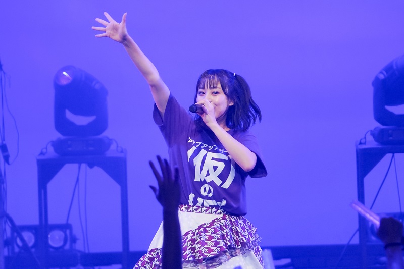 広いステージに3人というミニマム編成で戦いを挑むアプガ(仮)の(仮)は、気持ちと勢いで観客とともに会場の熱量を上昇させる。彼女たちは「キラキラミライ」をパワー全開で歌唱し、「アルストロメリア」ではエモーショナルな思いを歌とダンスでファンを魅了した。