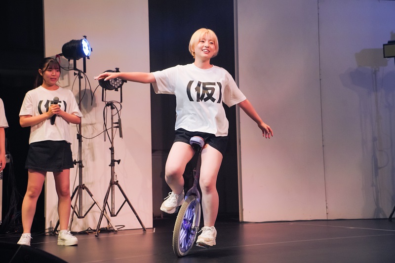 そして新メンバー2人は特技披露を行う。小野田は一輪車でステージを周り、松永は殺陣の基本十手の披露と韓国留学で身につけた韓国語で自己紹介を行った。青柳が「いざこの5人でステージに立ってみたら、もうほんとに頼もしくて。この5人ででっかい夢を掲げて突っ走っていきたいなって思いました! 頑張りましょう!」とやる気に満ちた声を上げる。