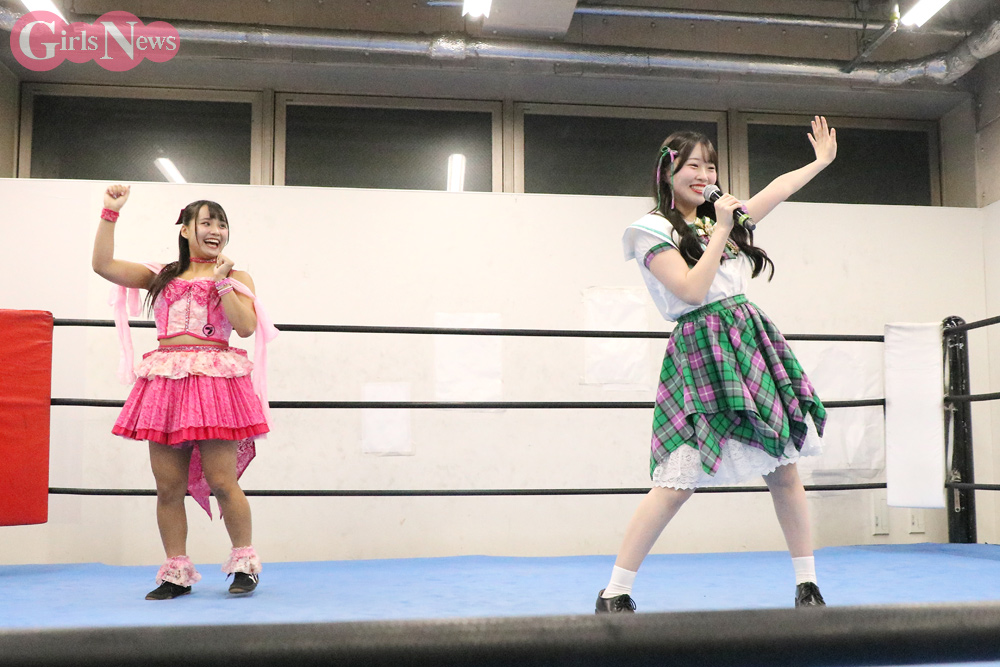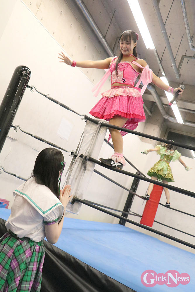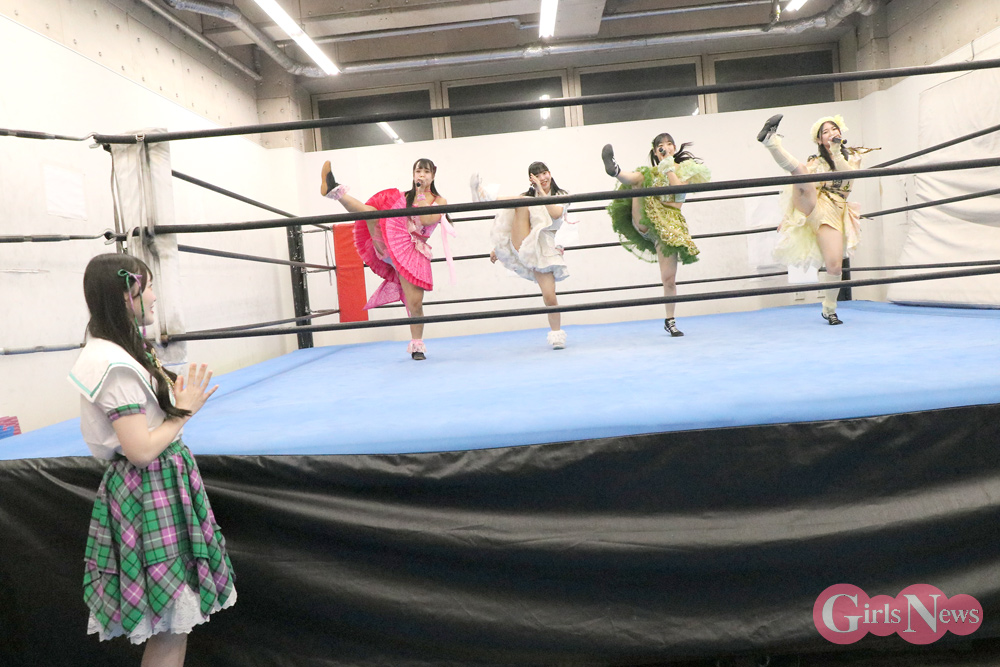 リングの特性について、渡辺さんは「板が下に入っているので、揺れとか、普段のステージと違ってマットの床なので、足を取られたりすることがあって、踊りづらさがあると思う」と説明し、山根さんも「意外と高くて、戦いに加えて高さに怯えるのもあると考えたら、みなさんすごい」と共感した。