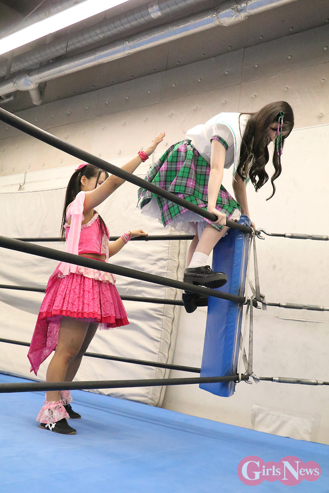 KLP48の山根涼羽さんとアップアップガールズ(プロレス)が30日、11月15日にマレーシアで行われる「アイドル」と「プロレス」がコラボしたイベント『GOOD LIFE presents LOVE & PEACE』に向けた練習を都内で公開した。