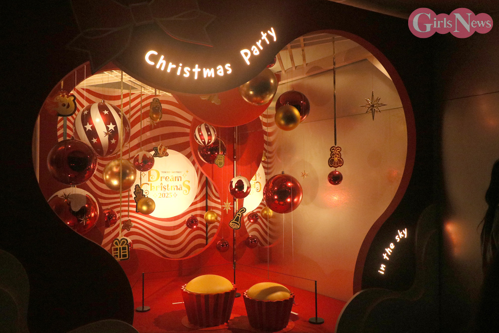 また、東京スカイツリー展望デッキと天望回廊では、“空の上のクリスマスパーティー”をテーマとした限定の装飾やフォトスポットを設置。展望ガラスに浮かぶ大迫力のパノラマスクリーンでも限定映像が流れ、さらにロマンチックな夜を演出する。