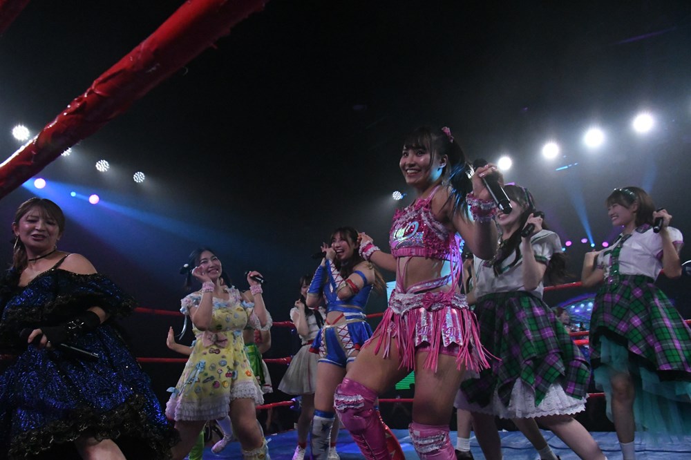 イベント終盤には、アイドルの応援にモーニング娘。OGの矢口真里さんがスペシャルゲストとして登場。KLP48の選抜メンバー、NGT48北村優羽、SKE48兼東京女子プロレスの荒井優希、アップアップガールズ(プロレス)も加わり、エンディングでは大ヒット曲『LOVEマシーン』を披露した。曲の最後には全選手、全出演者がリングの周りを囲んで会場全体で大合唱。マレーシアのファンの拍手喝采の中、イベントは熱狂のうちに終幕となった。