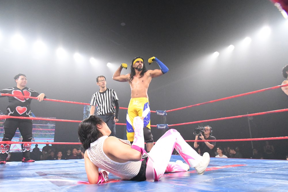 プロレスパートでは熱戦の4試合が繰り広げられ、地元のファンは固唾をのんでリングの攻防を見守った。特にメインイベントでは、東京女子プロレスの渡辺未詩選手が登場。一時は苦戦を強いられるも、最後は得意技のティアドロップで激勝を飾り、会場を熱狂させた。試合後のマイクでは、渡辺選手が「センキュー! メインイベント、勝ちましたー! こうやって東京女子プロレスでマレーシアに来れてとってもとっても幸せです! またみんなでマレーシアに来たいと思います!」と英語を交えてコメントし、会場から大きな拍手と歓声が送られた。