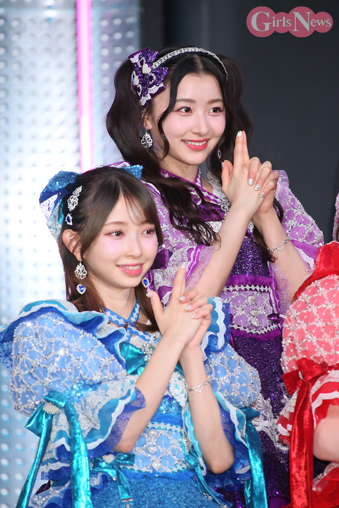 メンバーを代表して小泉遥香さんは、楽曲『超最強』について「令和の推し活ソングです。全アイドルが、全アイドルファンに向けて歌った楽曲で、“スマホの左側に必ず私たちの声を重ねてほしい”とか、“スマホのカメラロールは私たちばっかりだよね。じゃないと一生許さない”、といったアイドルがファンに絶対守ってほしいことをたくさん歌詞にしています」と紹介した。