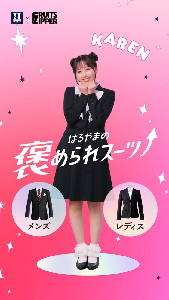 アイドルグループ FRUITS ZIPPERを起用したはるやま新Web CM『褒められモーメント篇』全7本が、19日より順次公開され、全国のはるやま店舗でフレッシャーズを対象とした応援キャンペーンを開始した。