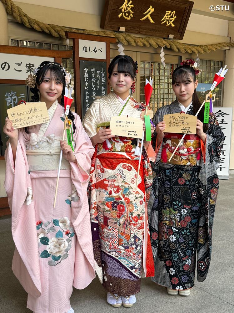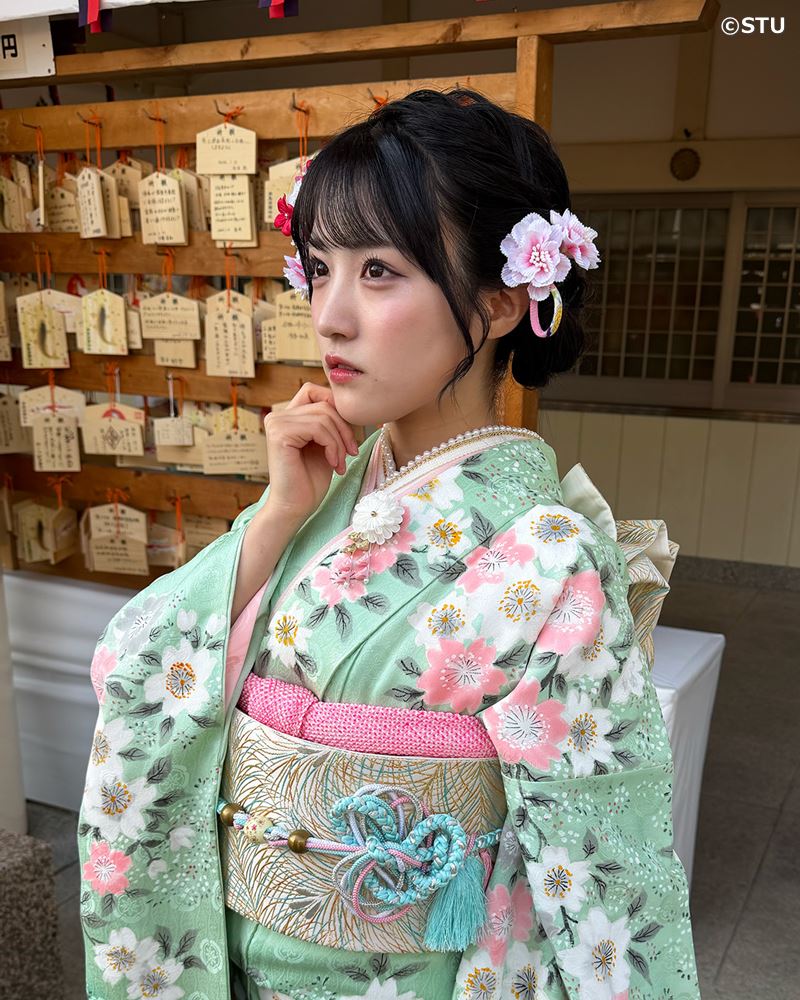 瀬戸内を拠点に活動するアイドルグループ・STU48の20歳のメンバー6人が12日、広島護国神社で成人奉告祭を執り行い、その後STU48広島劇場でファンとの交流イベント「2026年 STU48 二十歳の集いイベント」に参加した。