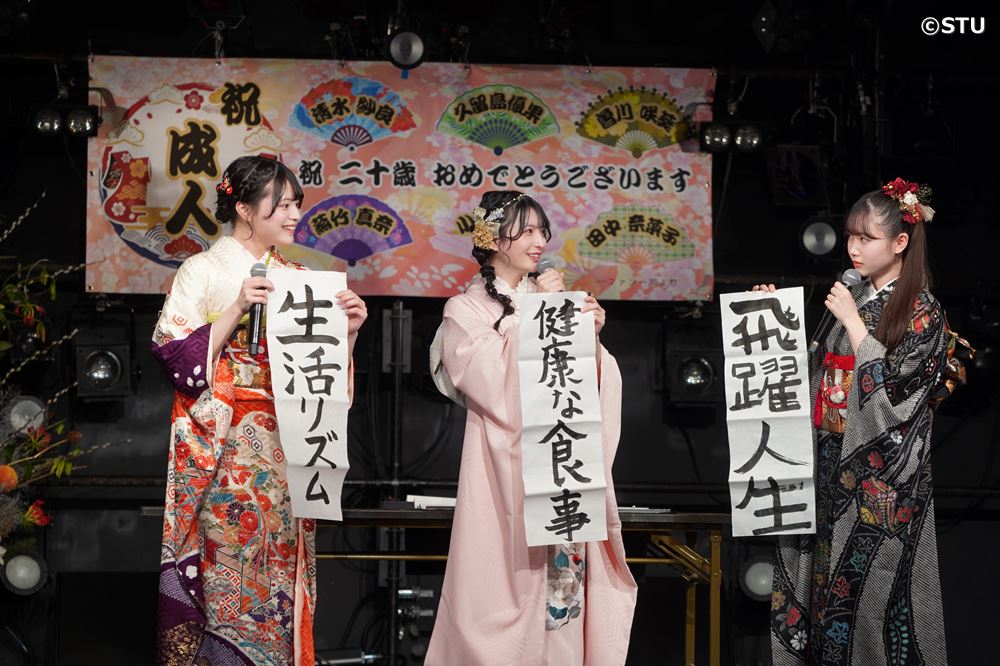 STU48 二十歳メンバー6人、晴れ着姿で大人の誓い 爆笑クイズで会場わかす