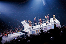 ライブは、宙を舞う巨大な顔型の気球に乗った7人の登場でスタート。通信で連動するサイリウムなど、会場全体を使った光の演出や、宇宙船を模したゴンドラカーなど、大掛かりの演出の連続で観客の度肝を抜いた。
