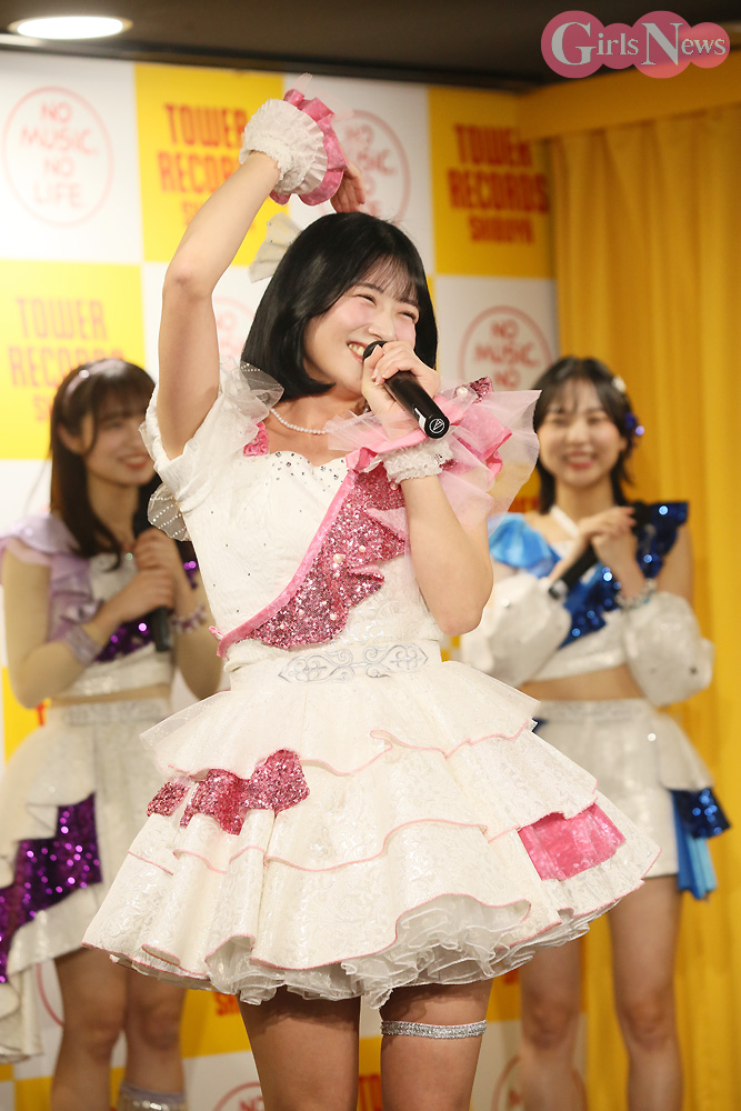 新メンバーの兵藤さんは「アイドルが大好きでリリースイベントなどもファンとして来ていたのですが、初めてリリースイベントに来たのがこの渋谷のタワーレコードでした。今日こうして自分がアイドルとしてここに立てたことが本当に嬉しいです。これからもリリースイベントなど、自分の立ちたいステージがたくさんあるので、一つ一つ叶えていけるように頑張りたい」と述べた。