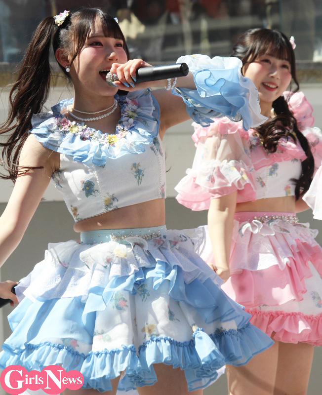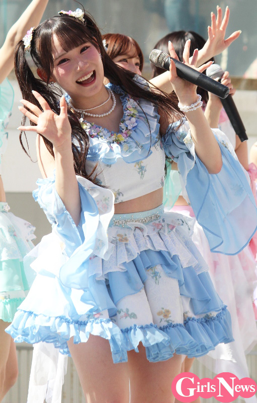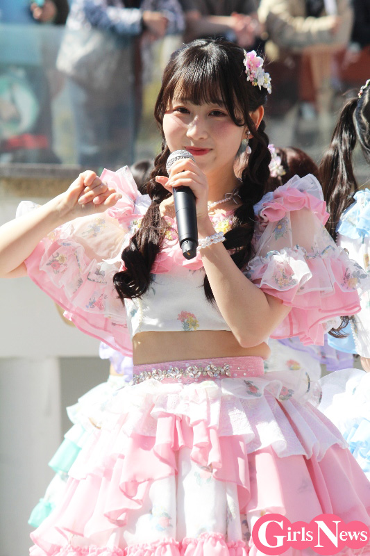 最初のMCでは、今回シングル表題曲で初選抜入りした荒野姫楓さんが「私、いつも大事なところで雨予報だったり雪予報だったり……、でも今日は本当に晴れてよかったです!」と初々しくコメント。また表題曲初センターの大村杏さんは「初めてのリリイベでどんな感じなんだろうとワクワクしていたんですけど、こーんなにたくさんの方が来てくださって、ありがとうございます! みなさん、うちわやサイリウムをたくさん振っていただいて、コールまで習得していて!」感激の様子で語った。