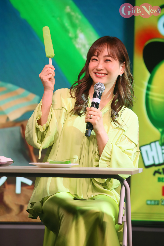姫野さんは「こんにゃく粉で作られているので低カロリーなのがダイエットに最高です。青リンゴ味は、フレッシュな香りがして、すごく美味しい。スッキリとしているので、これからの暑い季節にいっぱい食べたいです」と魅力を語った。