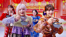 発表会には、CANDY TUNEのメンバー7名がCM撮影で着用したアジアテイストの衣装に身を包み登場した。衣装について聞かれると、村川緋杏さんは「いつも大きめのフリフリ衣装を着ることが多いのですが、初めてアジアテイストの衣装で柄も華やかで。一人ひとり違うけど全員で並ぶと統一感があって、とっても素敵な衣装になりました!」とコメントした。