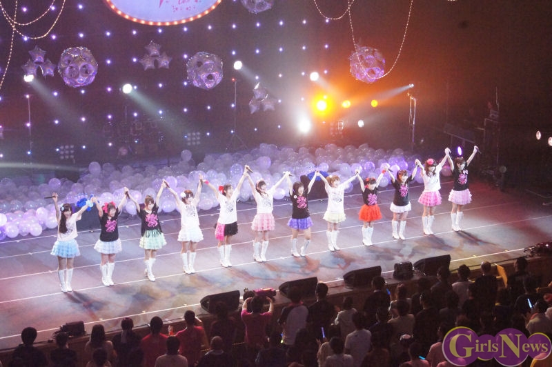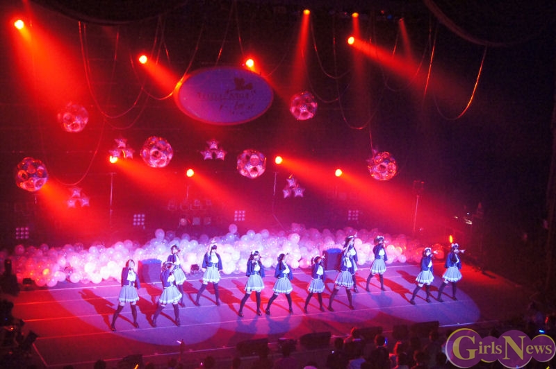新曲のカップリングとなる「エシカル~ありがとうを伝えたい~」では、ステージに登場すると思いきや、なんとアフィリア・サーガ・イーストのメンバーは会場の後方から新曲の女の子らしいふわふわのスカートの新衣装で登場。歌いながら、客席の通路を歩き 間近で新曲を熱唱し先輩との距離を縮めていた。