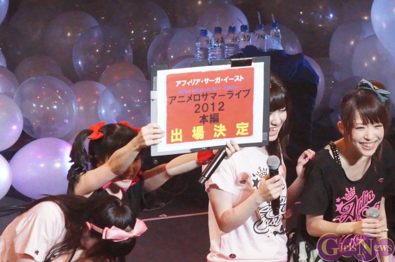 さらに、8月25日・26日にさいたまスーパーアリーナで行われる「アニメロサマーライブ2012」の本編に出場することが発表されるとメンバーは号泣。アニメロサマーライブはアフィリア・サーガ・イーストが結成された時からの夢となっており、ついに実現する。「アニメロサマーライブ2012」のチケットは6月24日(日)から一般発売されるので駆けつけよう。