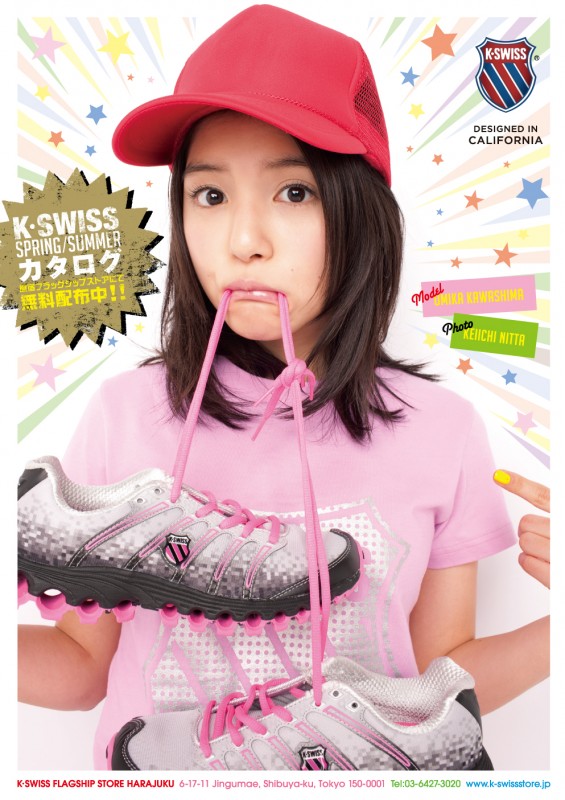 今回、K-SWISSの春夏カタログに川島海荷さんが登場。この撮影について「本当にいろんな洋服を着てウキウキでした。最後は踊りながら撮影をしてました。」といろんなK-SWISSの洋服を着られたことに感激。このK-SWISSの春夏カタログには9nineのメンバーも登場しており、カタログは無料でゲットできるとのこと。