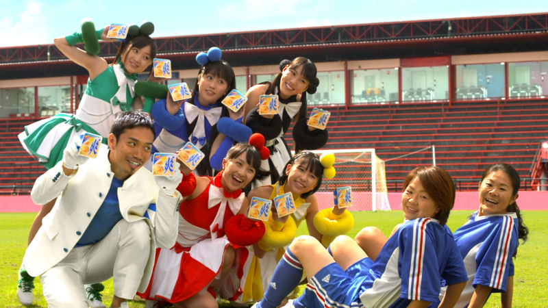 ももいろクローバーZが長友佑都選手とともになでしこジャパンの澤穂希・宮間あやを応援