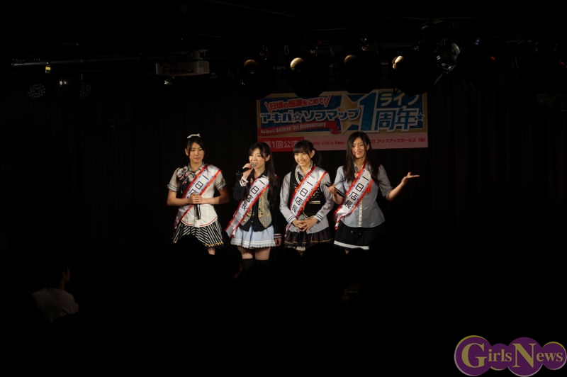 白戸佳奈さんは「私たち初めて東京でワンマンライブをさせていただいたのがここなんです。初めてのワンマンを東京で行うということで印象に残ってます。」と去年の8月14日にアキバ☆ソフマップ1号店の8Fでライブを行った思い出を語っていた。