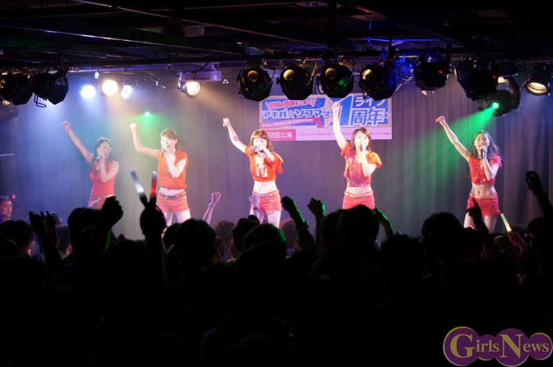 この日、夜の部のトップバッターには結成してわずか1か月という新人アイドルユニット ベイビーレイズが登場。持ち歌は「ベイビーレイズ」のみということで、MCをはさみ2回「ベイビーレイズ」を熱唱。ダンスパフォーマンスは現在進行形で進化中。ベイビーレイズは現在 ポニーキャニオン本社1Fのイベントスペースで「虎の門道場」の無料ライブを行っている。こんなに近くで見られるのは今だけかもしれないので、アイドルファンは駆けつけて欲しい。