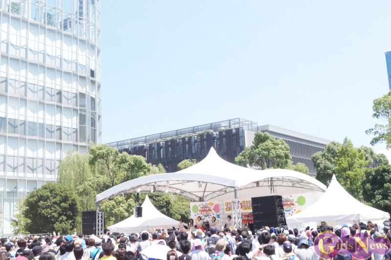 9nineは8月5日、フジテレビ湾岸スタジオ横の公園広場に特設されたオープンステージ「SMILE GARDEN」に登場すると、ステージ前にはたくさんのファンが大集結。中にはゆりかもめの始発で駆けつけたという熱狂的な9nineファンもいるなどファンに支えられている。
