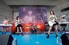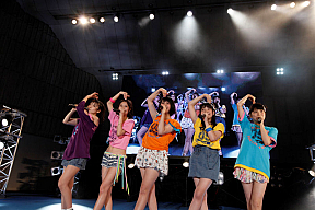 「困惑コンフューズ」で、メンバー・ファンがタオルを一斉にふり回り大盛り上がり。途中、タオルの入った鉄砲を客席に放つ演出も。熱気と一体感に包まれた9nineにとって“初”の野外ワンマン。大きなステージをめいいっぱいに使いながらお客さんとの空間を作って行く9nine。「チクタク☆2NITE」「Love me?」と続きファンのテンションもピークへ。