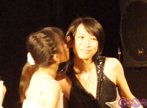 美海さんは「美海は絆~kizuna~が始まって3年くらい経つかな。ずっとメンバーでやってきて、ここまで3年間マイク向けるのは2回に1回ぐらいのペースで、最初の頃は、歌も1人で歌いたくないとかやる前からいつも全部やる前から無理とずっと言ってきたけど、TIFとか今までのいろんな経験とかしてきて、美海ももっと頑張ろうなと思ったり、なんかね晴ちゃんがめっちゃ頑張ってくれるの・・・。今日まで一番うちらを引っ張ってきてくれたのは、リーダーの晴ちゃんなの。気持ち的に今日はダメだなといろいろ思っても晴ちゃん口に出さずにいつも皆のことを引っ張って来てくれたから。日頃伝えられない分、今日こうやって晴ちゃんに『ありがとう』ってちゃんと伝えないといけないなと思って・・・。だから晴ちゃんありがとう!」