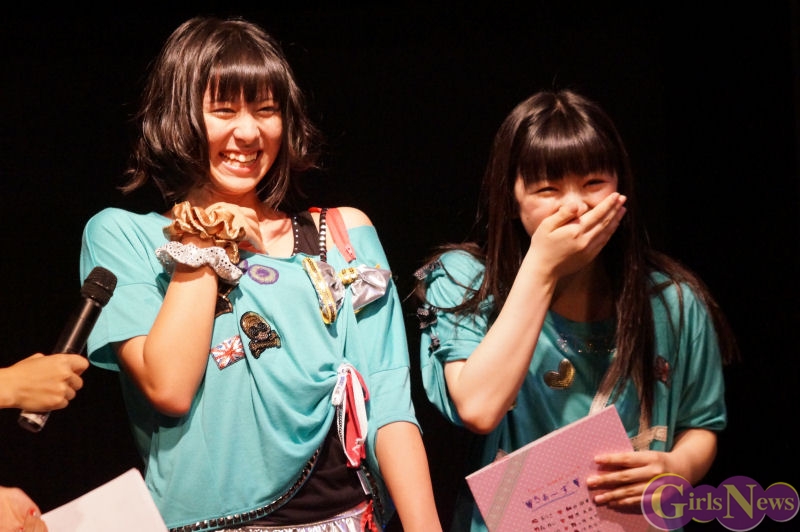 「ちあ~ず」のメンバーである細田朋華さんと松ありささんが今年受験生ということでに、サプライズでちあ~ずのメンバーから色紙がプレゼントされると彼女たちは感激。