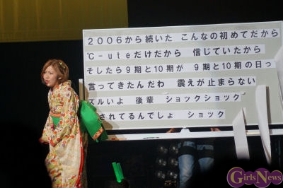 鈴木愛理さんは「オーディションに受かってから、私たち丸10年経ったので、その中で培ってきたいろんなこととかは他のアイドルの皆さんには負けないなていうのもありますし、今後は将来(NHKの)紅白とか大きな番組にも出れるように頑張っていきたいなと思っているので、常に上の上の方を目指して℃-ute頑張っていきたいと思います。」と熱意を語っていた。